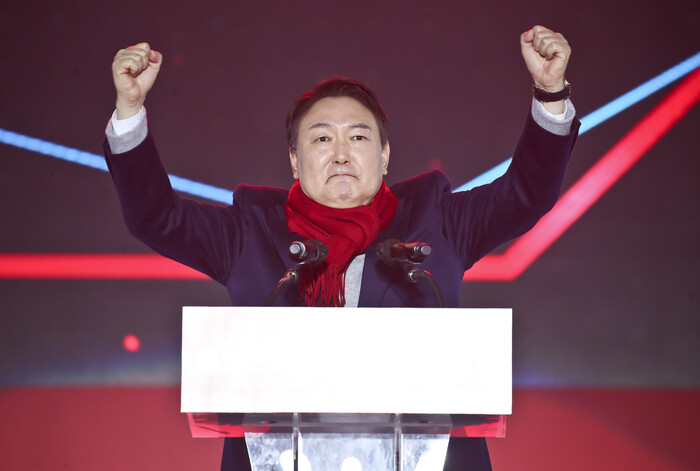 ▲ 국민의힘 윤석열 대선 후보가 6일 오후 서울 송파구 올림픽공원 체조경기장에서 열린 국민의힘 제20대 대통령선거 선거대책위원회 출범식에서 연설을 마치고 두 손을 들어 인사하고 있다. [국회사진기자단=연합뉴스] |