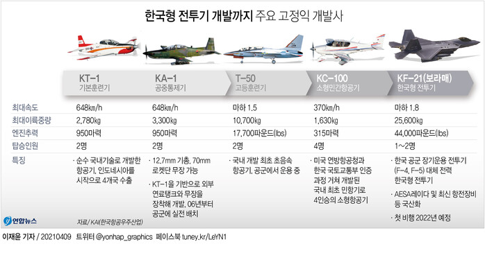 ▲ 한국형 전투기 개발까지 주요 고정익 개발사. [그래픽= 연합뉴스] |