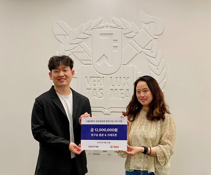 크래프톤은 서울대 출신 임직원이 회사와 함께 모교에 발전 기금 1200만 원을 매칭 그랜트 방식으로 기부했다고 28일 밝혔다.