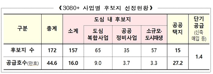 | ▲ 3080+ 사업별 후보지 선정 현황. [국토부 제공] |