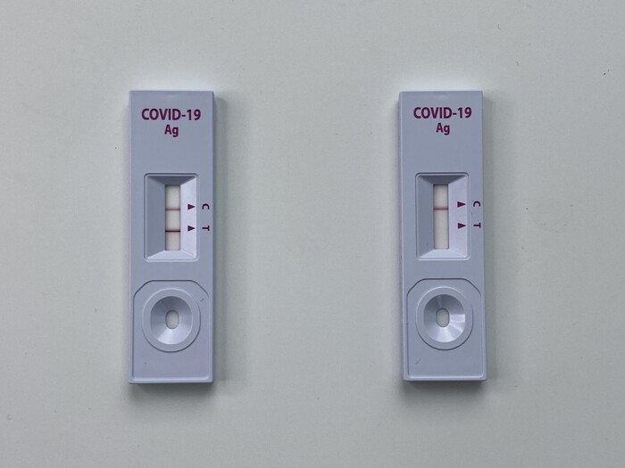 ▲ 식품의약품안전처는 23일 국내에서 처음으로 코로나19 자가검사용 항원키트 2종을 허가했다. 사진은 자가검사키트에서 코로나19 양성 판정을 나타내는 붉은색 두 줄(왼쪽), 음성 판정을 나타내는 붉은색 한 줄(오른쪽). [사진= 연합뉴스] |