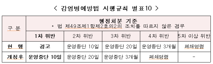 ▲ 감염병예방법 시행규칙 별표10. [출처=중앙재난안전대책본부] |