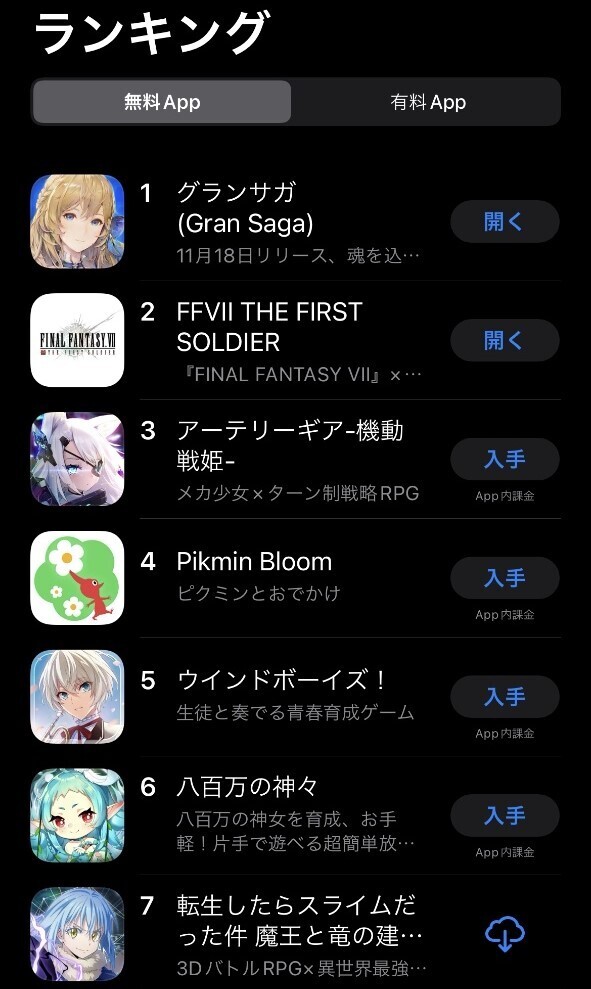 ▲ 일본 앱스토어 인기 다운로드 1위를 기록한 그랑사가 [엔픽셀 제공] |