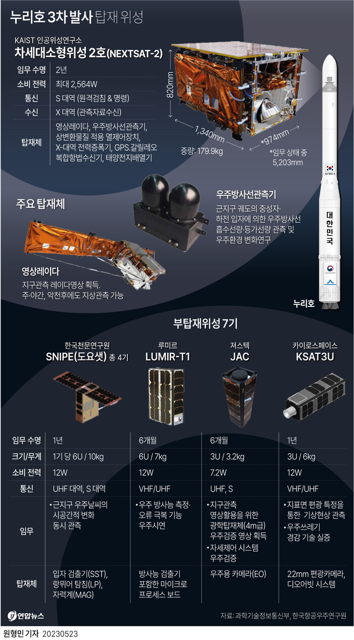 ▲ 누리호 3차 발사 탑재 위성. [그래픽=연합뉴스] |