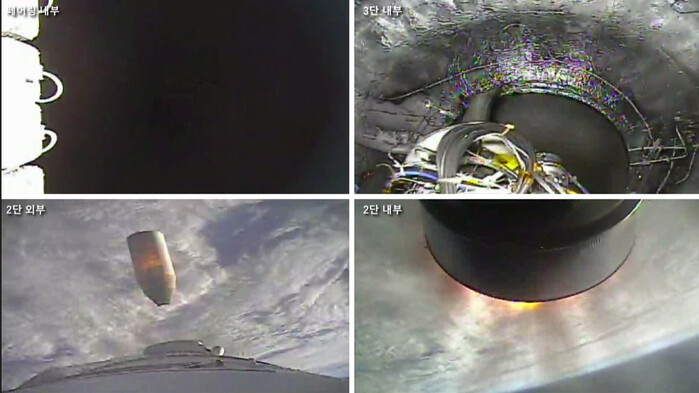 ▲ 누리호 3차 발사는 차세대소형위성 2호 1기와 큐브위성 7기 등 본격적으로 실용급 위성을 탑재해 발사하는 첫 사례다. 사진은 누리호에 탑재된 카메라 영상. [한국항공우주연구원 제공] |
