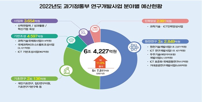 ▲ 2022년도 과기정통부 연구개발사업 분야별 예산현황. [과학기술정보통신부 제공] |
