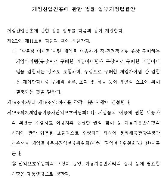 | ▲ 게임산업진흥에 관한 법률 일부개정법률안 일부 |