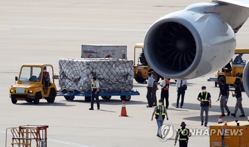 ▲ 미국 모더나의 코로나19 백신 35만4천회분이 7월 8일 오후 영종도 인천국제공항 화물터미널에 도착, 관계자들이 백신이 담긴 화물을 옮기고 있다. [사진=연합뉴스] |