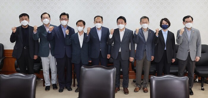 추경호 부총리는 이날 첫 경제장관간담회에서 경유 유가연동보조금 지급 기준가격 인하 방침 이외에도 “우리가 직면한 위기는 대내외 리스크가 복합적으로 작용한 결과인 만큼 효과적인 위기 극복을 위해서는 새 정부 경제팀이 부처간 칸막이를 넘어 원팀(One-Team) 으로 합심해 대응해야 할 것”이라고 강조했다.