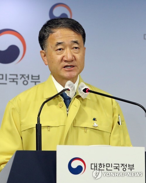 ▲ 중앙재난안전대책본부 1차장인 박능후 보건복지부 장관이 1일 세종로 정부서울청사에서 코로나19 중대본 회의 브리핑을 하고 있다. [사진= 연합뉴스] |