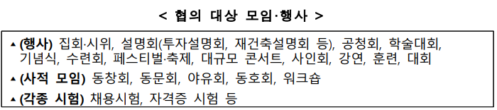 ▲ 협의 대상 모임 및 행사. [출처= 충앙재난안전대책본부] |