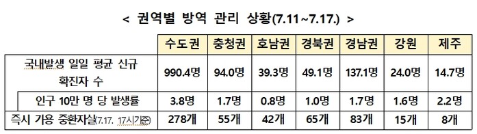 ▲ 권역별 방역 관리 현황. . [출처=중앙재난안전대책본부] |