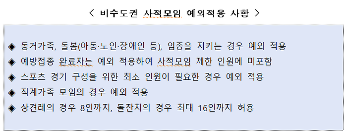 ▲ 비수도권 사적모임 예외적용 사항. [출처=중앙재난안전대책본부] |