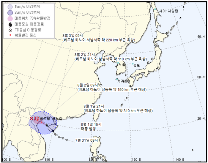 이어 3일 오전 9시에는 타이완 타이베이 동북동쪽 약 130㎞ 부근 해상을 지나 오후 9시에는 타이베이 북쪽 약 260㎞ 부근 해상까지 진출할 것으로 관측된다.