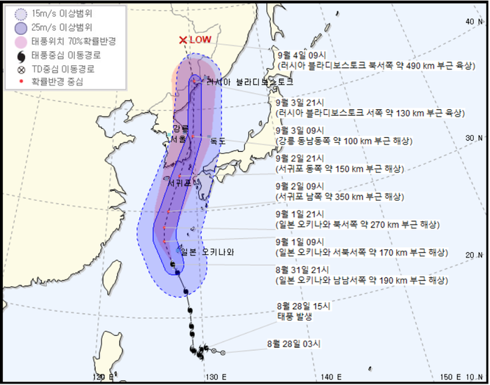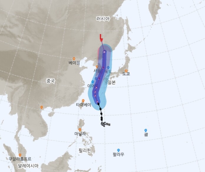 제주도 동쪽 해상으로 진입할 때에도 940헥토파스칼(hPa) 내외의 매우 강한 강도를 유지할 것으로 예상돼 철저한 대비가 요구된다.