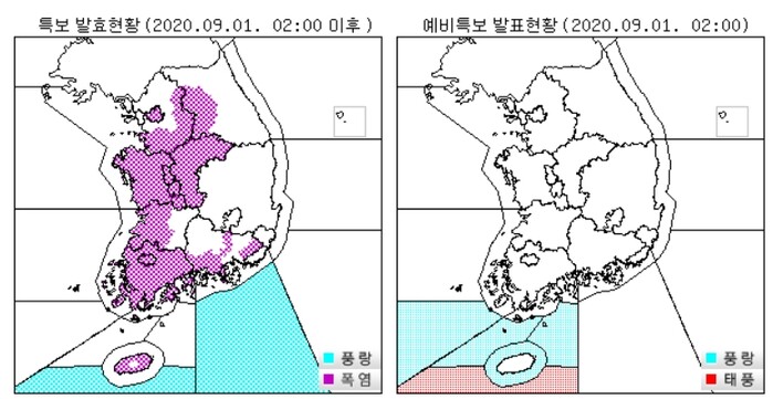 이에 기상청은 “전국에 매우 강한 바람과 함께 매우 많은 비가 내리는 곳이 있겠다”며 “피해 없도록 사전에 철저히 대비하기 바란다”고 당부했다.