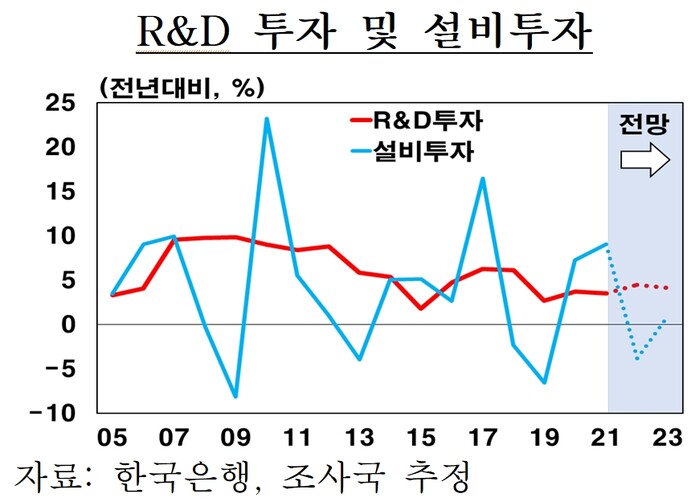 ▲ 연구개발(R&D) 투자 및 설비투자. [한국은행 제공] |