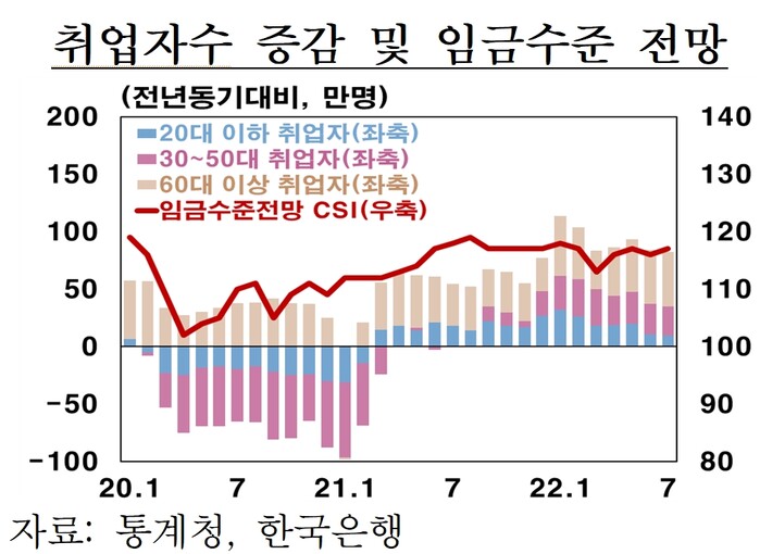 ▲ 취업자수 증감 및 임금수준 전망. [한국은행 제공] |