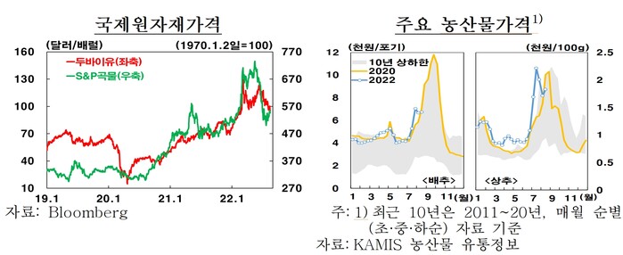 ▲ 국제워낮재가격과 주요 농산물가격. [한국은행 제공] |