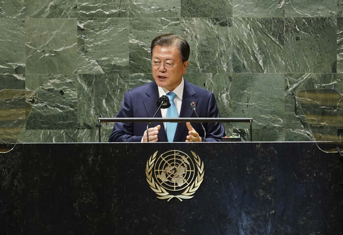 제76차 유엔총회 참석을 위해 전날 뉴욕에 도착한 문 대통령은 이날 유엔 방문의 첫 일정으로 SDG 모멘트에 참석했다. 이번 행사에서 유일한 국가 정상 자격으로 행한 연설이었다.