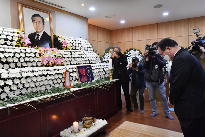 ▲ 고(故) 노태우 전 대통령의 국가장 장례위원이 352명으로 구성됐다.사진은 김부겸 국무총리가 27일 서울 종로구 서울대병원 장례식장에 마련된 고(故) 노태우 전 대통령 빈소를 찾아 조문을 하고 있는 모습. [사진공동취재단=연합뉴스] |