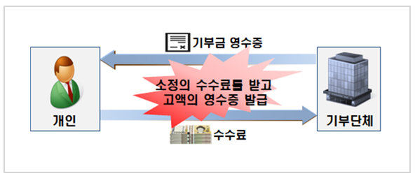 ▲ 수수료를 받고 거짓 기부금 영수증을 발급한 사례. [출처= 국세청] |