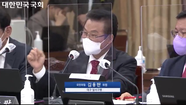 ▲ 국민의힘 김용판 의원이 18일 경기도청에서 열린 국회 행정안전위원회의 경기도에 대한 국정감사에서 이재명 경기지사에게 질의하고 있다. [국회 인터넷의사중계시스템 캡처] |
