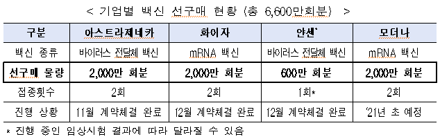 ▲ 기업별 백신 선구매 현황. [출처= 보건복지부] |