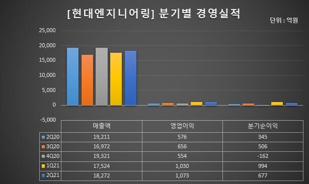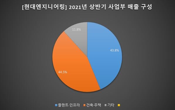 국내 수주 잔고도 주택시장 호조로 지난해 4분기부터 꾸준히 늘어 2분기 말 15조 7523억 원에 달한다. 현대엔지니어링은 지난해에 이어 올해도 도시정비사업 수주 규모가 이달 1조 원을 돌파하면서 2년 연속 1조 원대를 기록했다.