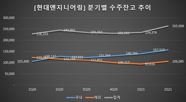 2분기 말 기준 수주 잔고는 26조 3608억 원으로 지난 1분기보다 12.5%(2조 9232억 원) 증가했다.