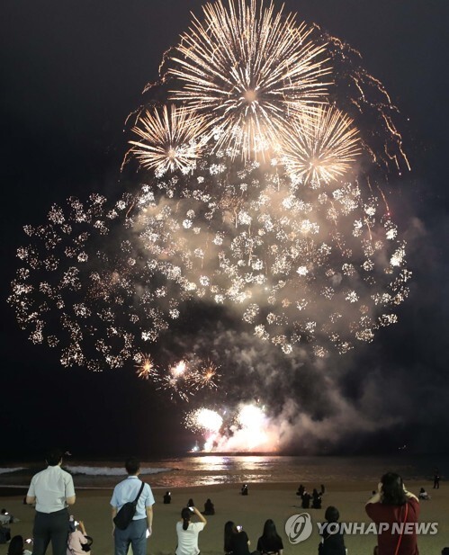 | ▲ '생일 축하도 넘사벽'. 1일 오후 7시30분께 부산 해운대해수욕장 앞바다에서 중국 팬들이 방탄소년단 멤버 정국의 생일을 축하하기 위해 마련한 불꽃놀이 생일 이벤트가 펼쳐지고 있다. 이 초대형 불꽃놀이 이벤트는 9분 동안 진해됐다. [부산= 연합뉴스] |