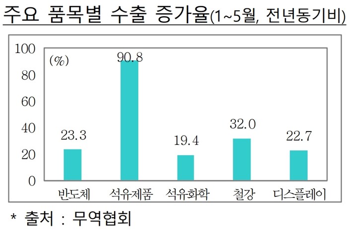 | ▲ 올해 1~5월 주요 품목별 수출 증가율. [기획재정부 제공] |