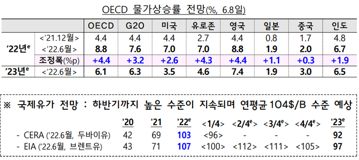 | ▲ OECD 물가상승률 전망. [기획재정부 제공] |