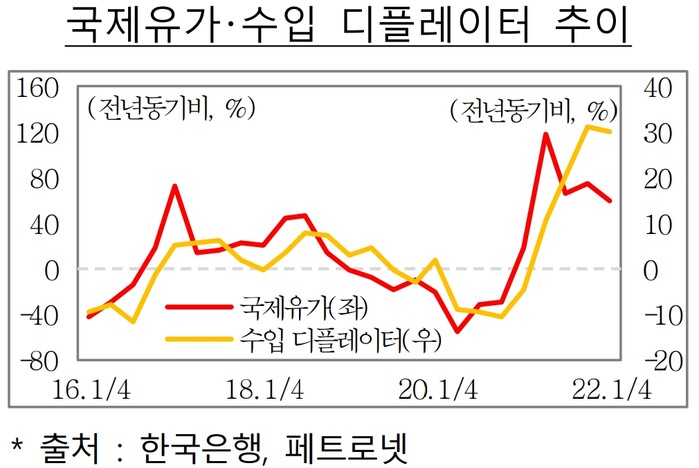 | ▲ 국제유가·수입 디플레이터 추이. [기획재정부 제공] |