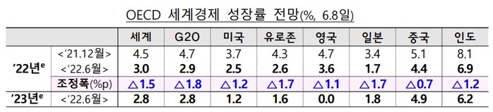 | ▲ OECD 세계경제 성장률 전망. [기획재정부 제공] |