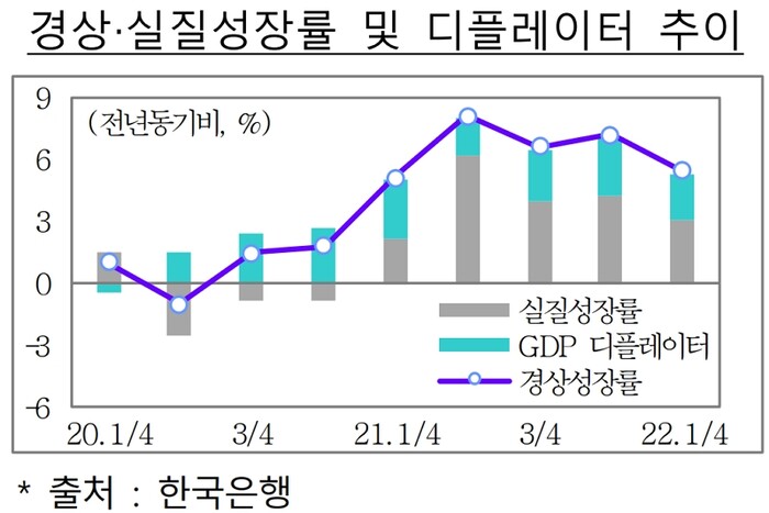 | ▲ 경상·실질성장률 및 디플레이터 추이. [기획재정부 제공] |