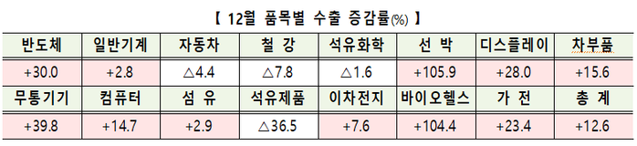 ▲ 12월 품목별 수출 증감률. [출처= 산업통상자원부] |