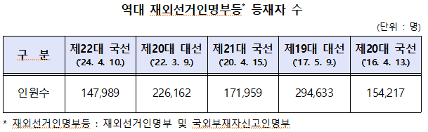 | ▲ 역대 재외선거인명부등 등재자 수. <중앙선거관리위원회 제공> |