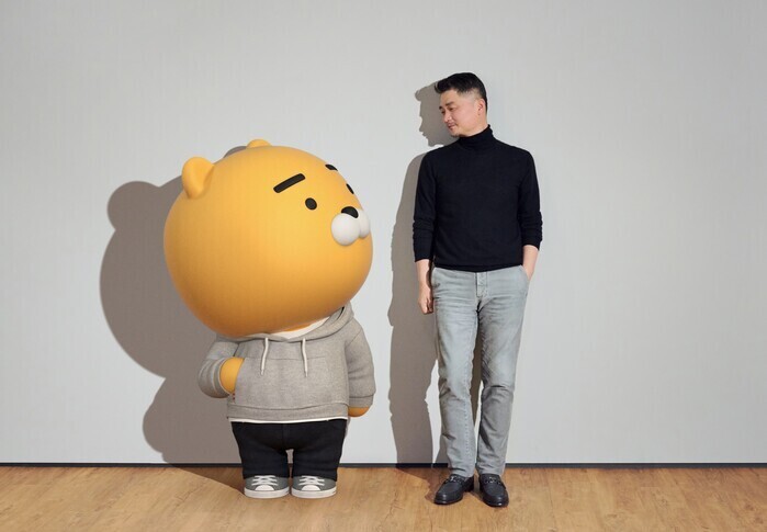 | ▲ 김범수 카카오 의장(오른쪽)과 카카오프렌즈 캐릭터 '라이언' [출처=카카오 나우] |