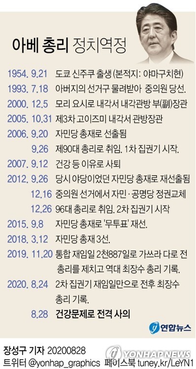 | ▲ 아베 총리 정치 역정. [그래픽= 연합뉴스] |