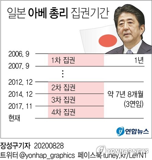 | ▲ 일본 아베 총리 집권기간. [그래픽= 연합뉴스] |