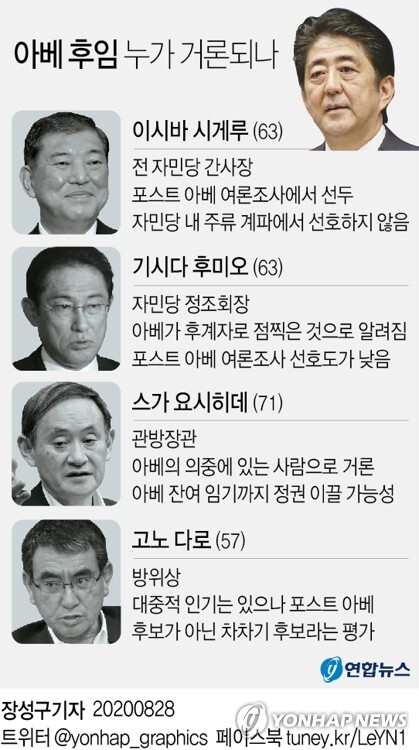 | ▲ 아베 후임 총리 후보군. [그래픽= 연합뉴스] |