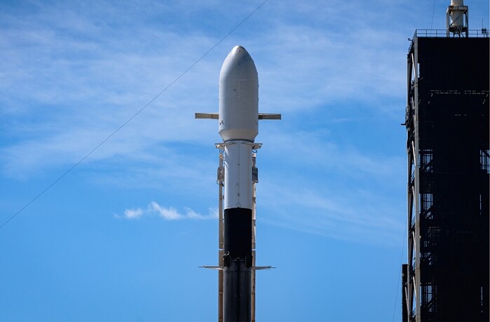 ▲ 8일 오전(한국 시간) 군사정찰위성 2호기가 미국 민간 우주기업 스페이스X의 '팰컨9' 로켓에 탑재돼 미국 플로리다주 케네디스페이스센터 발사장에 기립 상태로 있는 모습. [국방부 제공] |