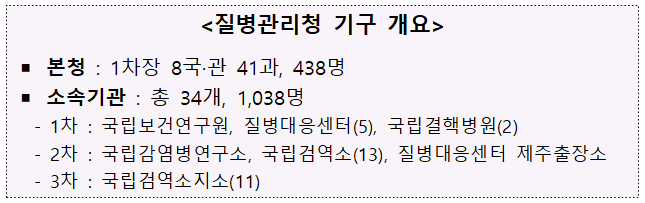▲ 질병관리청 기구 개요. [출처= 행정안전부] |