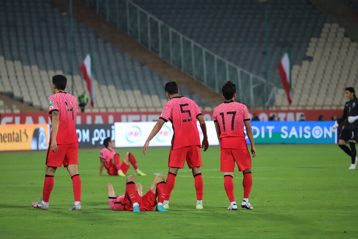▲ 대한민국 대 이란의 경기가 끝난 후 한국 선수들이 아쉬워하고 있다. [테헤란=연합뉴스] |