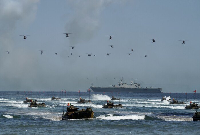 상륙작전이 전개되는 동안 하늘에서는 해군의 해상초계기 P-3C와 ‘피스아이’로 불리는 공군의 E-737 항공통제기, 공군의 다목적 공중급유 수송기 KC-330(일명 시그너스), 전술정찰기 RF-16, F-35A·F-15K 전투기, 아파치(AH-64) 공격헬기, 수리온, 치누크, 블랙호크 등 기동헬기가 하늘에서 입체적인 작전을 펼쳤다.