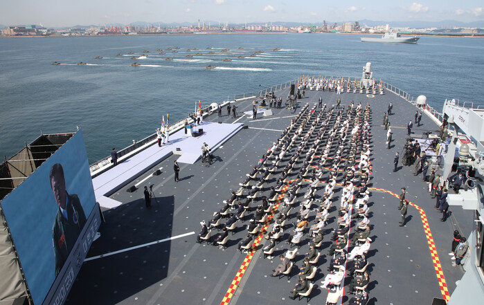 이어 “우리의 국방력은 어느 날 갑자기 기적처럼 솟아오른 것이 아니”라며 “우리의 땅과 바다, 하늘을 우리의 힘으로 지키겠다는 국민과 장병들의 의지로 이뤄낸 것이다. 평화의 한반도를 만들어내겠다는 우리 군의 헌신이 오늘 우리 국방력을 세계 6위까지 올려놓았다”고 강조했다.