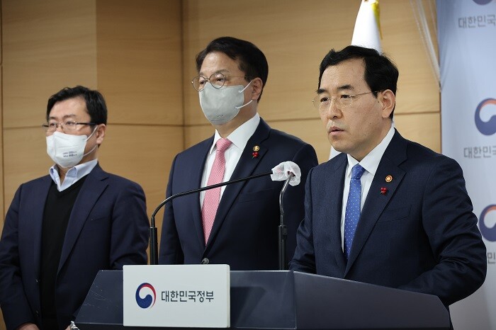 | ▲ 이창양 산업통상자원부 장관이 30일 정부서울청사 브리핑실에서 방기선 기획재정부 차관이 배석한 가운데 내년 1분기 전기·가스요금 조정안을 발표하고 있다. [서울=연합뉴스] |