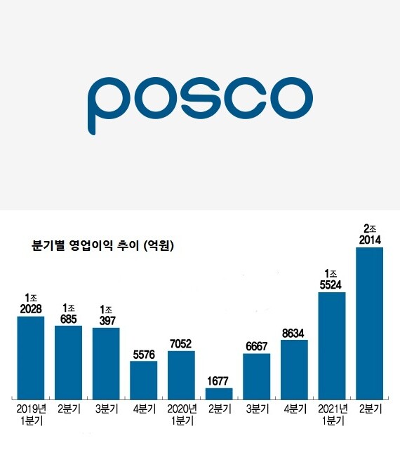 포스코가 분기 실적을 공개한 2006년 이래 최대 성과를 거뒀다. 2020년 2분기 별도기준 사상 첫 적자 이후 1년 만에 급반전.