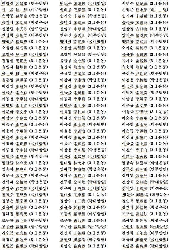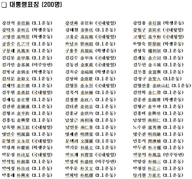 | ▲ 대통령표창 독립유공자 200명 명단. [국가보훈처 제공] |